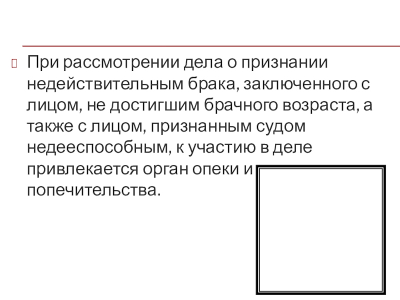 Слайд 10При рассмотрении дела о признании недействительным брака, заключенного с лицом, не