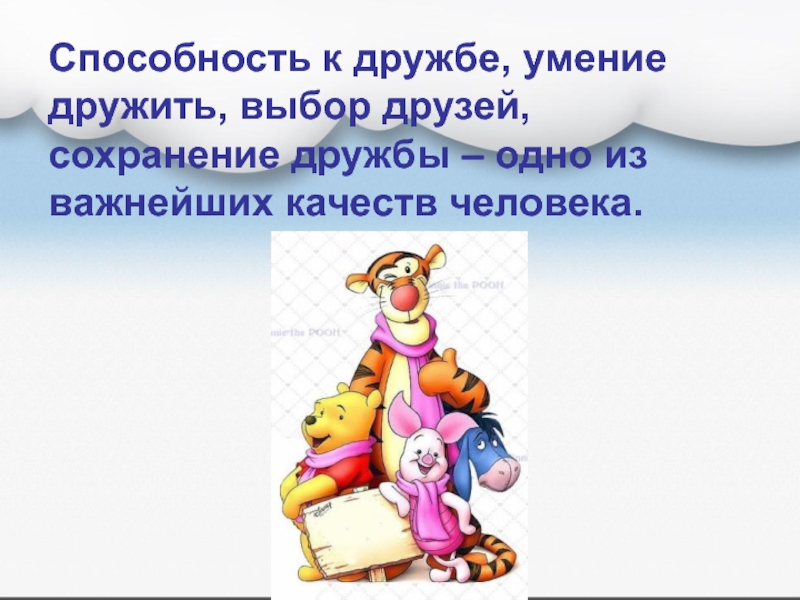 Способность к дружбе, умение дружить, выбор друзей, сохранение дружбы – одно из важнейших качеств человека.
