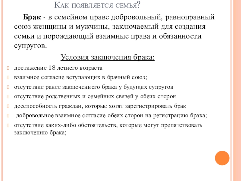 Условия заключения брака: