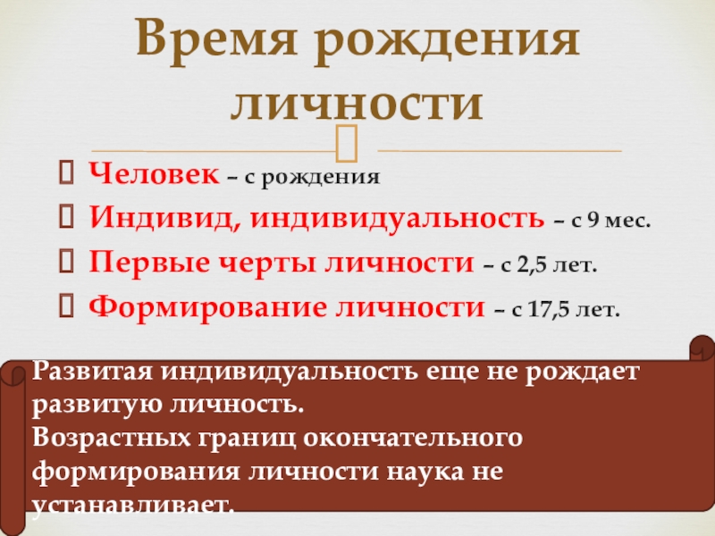 Время рождения личности