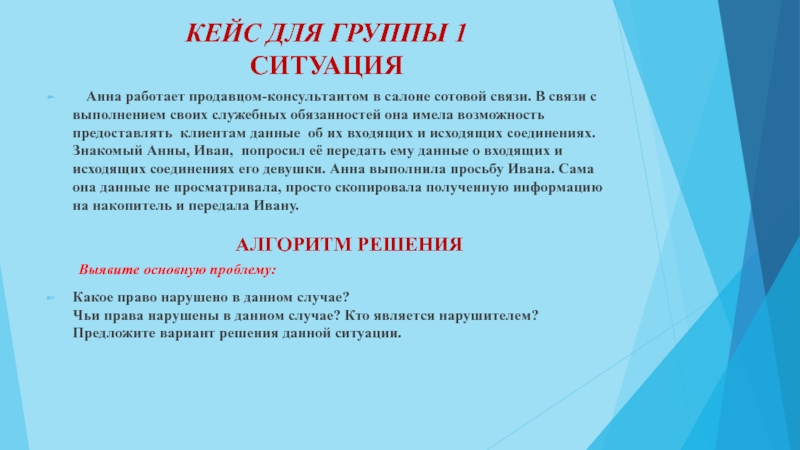 Слайд 9КЕЙС ДЛЯ ГРУППЫ 1