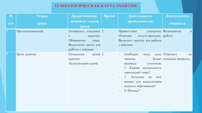 Слайд 6ТЕХНОЛОГИЧЕСКАЯ КАРТА ЗАНЯТИЯ.
