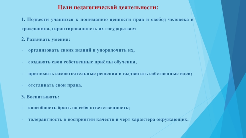 Слайд 3Цели педагогической деятельности: