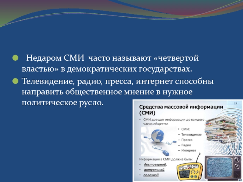 Слайд 26 Недаром СМИ часто называют «четвертой властью» в демократических государствах.