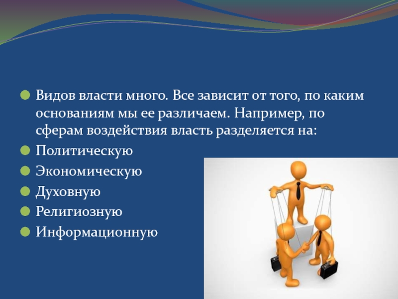 Слайд 8Видов власти много. Все зависит от того, по каким основаниям мы