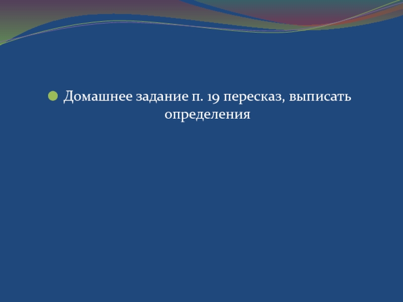 Слайд 36Домашнее задание п. 19 пересказ, выписать определения