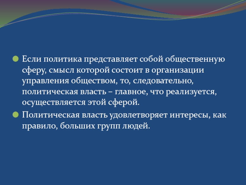 Политическая власть удовлетворяет интересы, как правило, больших групп людей.