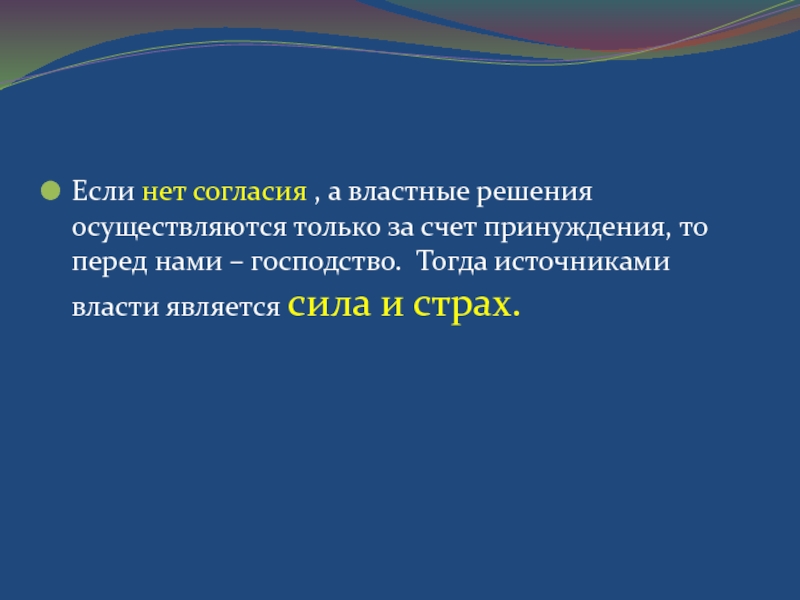 Слайд 7Если нет согласия , а властные решения осуществляются только за счет