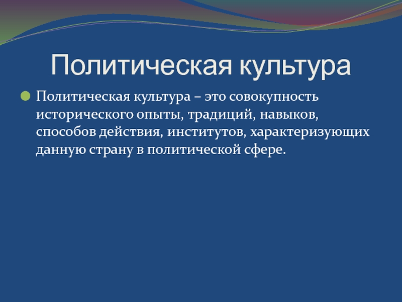 Политическая культура – это совокупность исторического опыты, традиций, навыков,