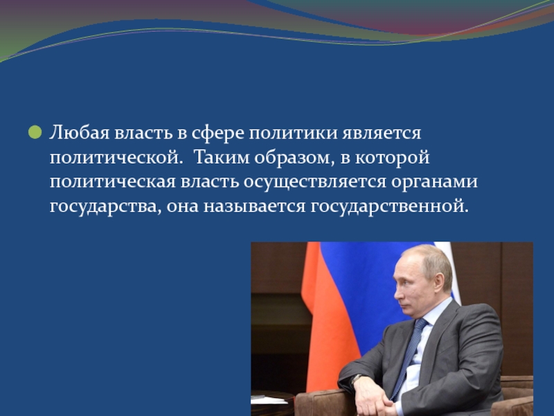 Слайд 16Любая власть в сфере политики является политической. Таким образом, в которой