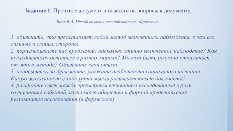1. объясните, что представляет собой метод включенного наблюдения, в чем его сильные и слабые стороны.