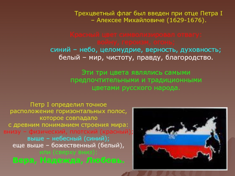 Российской Федерации, соединенные общей судьбой на своей земле, утверждая права и свободы человека, гражданский мир и согласие, сохраняя исторически сложившееся государственное единство, исходя из общепризнанных принципов равноправия и самоопределения народов, чтя память предков, передавших нам любовь и уважение к Отечеству, веру в добро и справедливость, возрождая суверенную государственность России и утверждая незыблемость ее демократической основы, стремясь обеспечить благополучие и процветание России, исходя из ответственности за свою Родину перед нынешним и будущими поколениями, сознавая себя частью мирового сообщества,