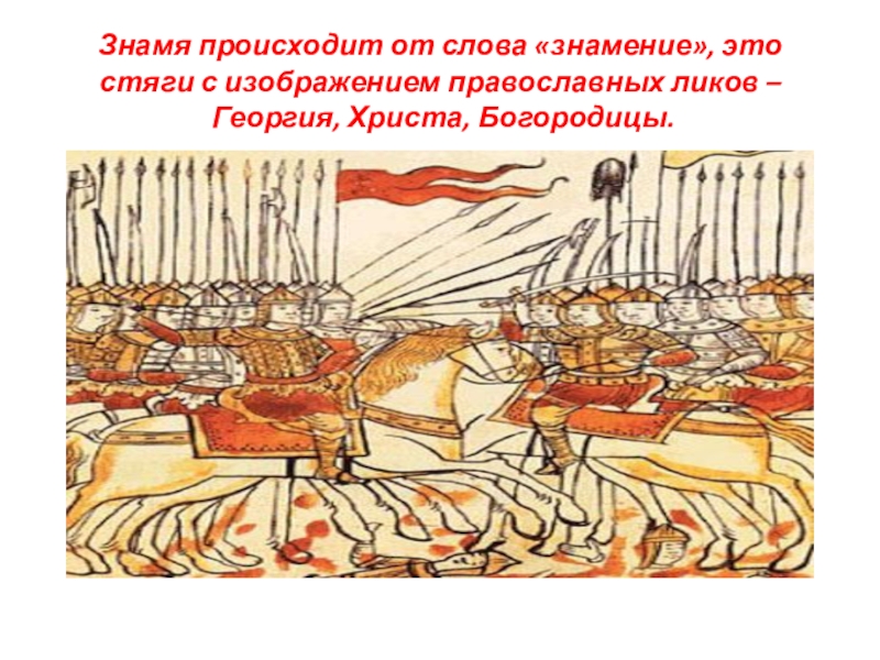 Знамя происходит от слова «знамение», это стяги с изображением православных ликов
