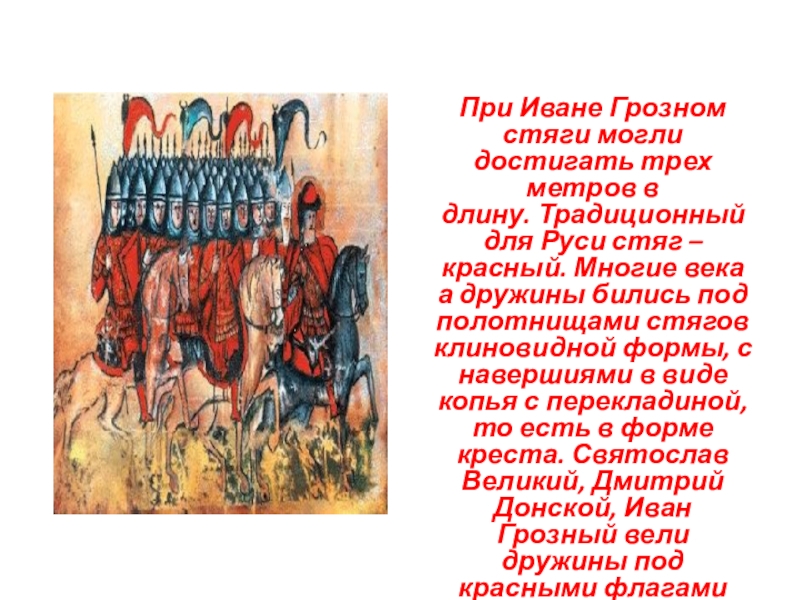 Слайд 7При Иване Грозном стяги могли достигать трех метров в длину. Традиционный для