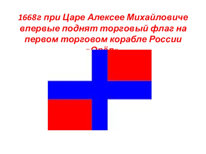 Слайд 151668г при Царе Алексее Михайловиче впервые поднят торговый флаг на первом