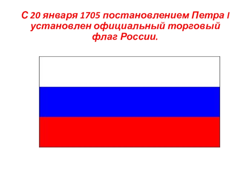 Слайд 19С 20 января 1705 постановлением Петра I установлен официальный торговый флаг