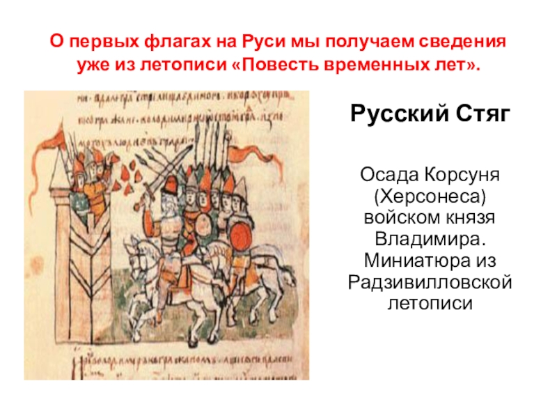 О первых флагах на Руси мы получаем сведения уже из летописи