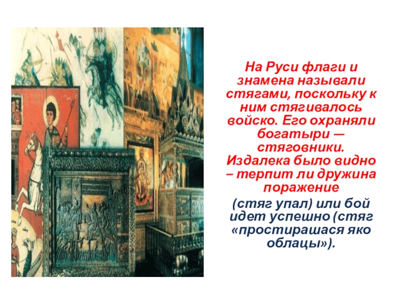 На Руси флаги и знамена называли стягами, поскольку к ним стягивалось
