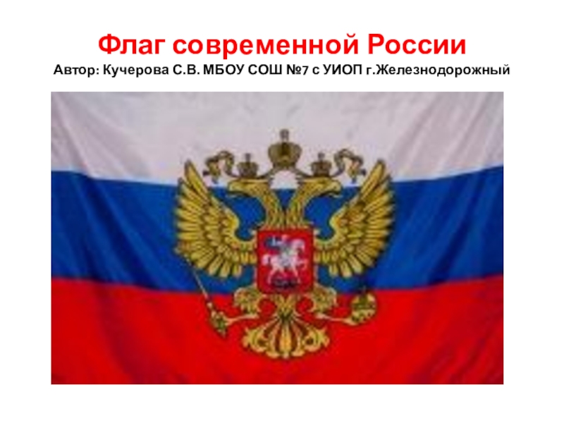 Слайд 25Русский флаг, состоящий из трех полос: верхней — белого, средней —