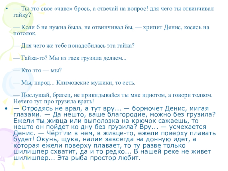 Слайд 6— Ты это свое «чаво» брось, а отвечай на вопрос! для