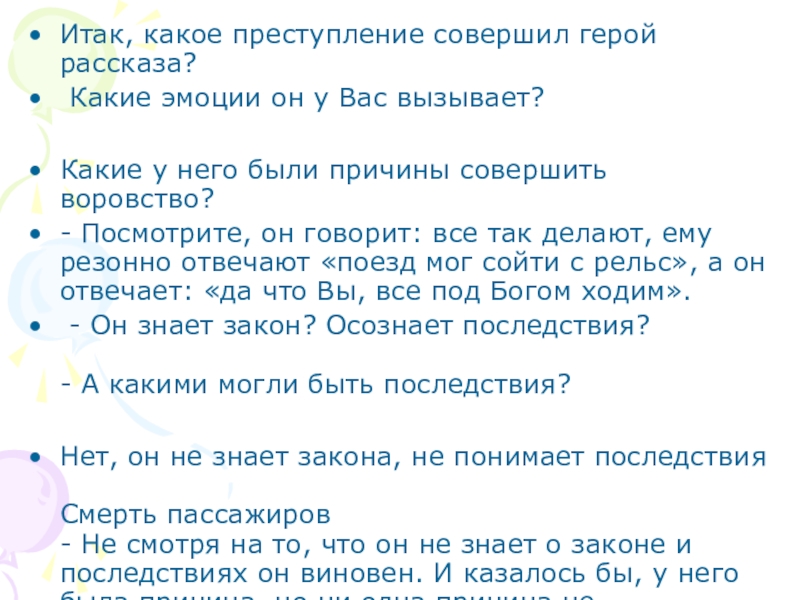 Слайд 11Итак, какое преступление совершил герой рассказа?
