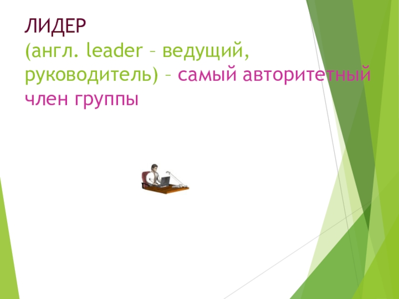 Лидер – человек, обладающий наибольшим авторитетом и признанием в своей группе, способный вести за собой других людей.