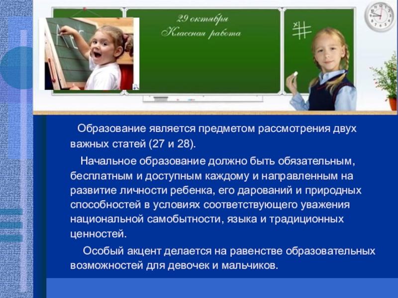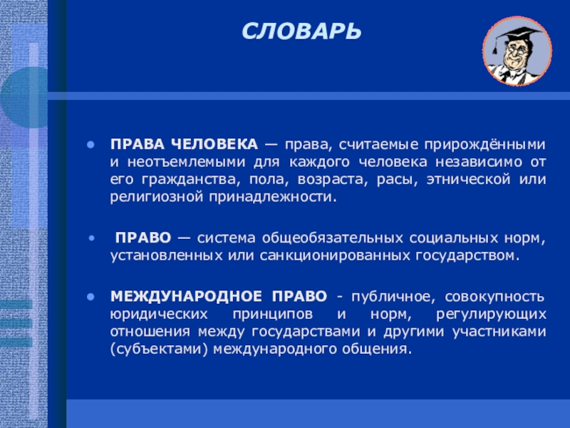 - свод прав детей, зафиксированных в международных документах по правам ребёнка. Согласно Конвенции о правах ребенка ребенок - это лицо, не достигшее 18 лет. Государство взяло на себя обязательство защищать детей, поэтому они имеют такие же права, как и взрослые.