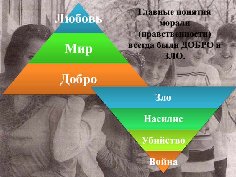 Слайд 9Главные понятия морали (нравственности) всегда были ДОБРО и ЗЛО.