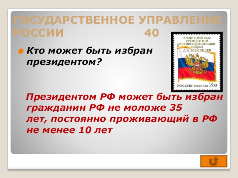 Президентом РФ может быть избран гражданин РФ не моложе 35