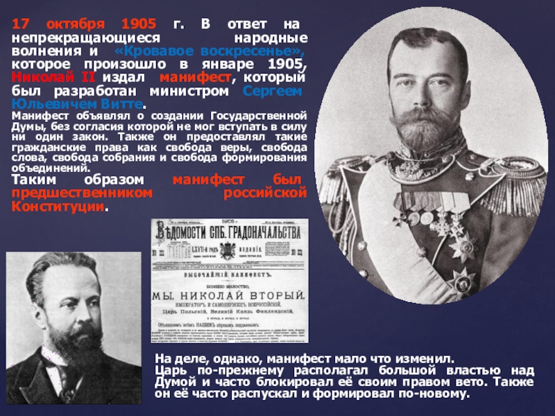 Царь по-прежнему располагал большой властью над Думой и часто блокировал её своим правом вето. Также он её часто распускал и формировал по-новому.