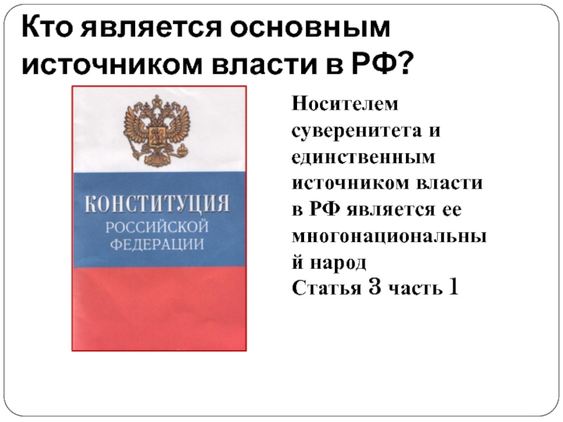Кто является основным источником власти в РФ? Носителем суверенитета и единственным источником власти в РФ является ее