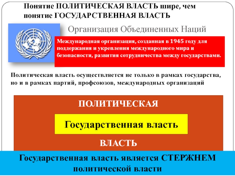 Понятие ПОЛИТИЧЕСКАЯ ВЛАСТЬ шире, чем понятие ГОСУДАРСТВЕННАЯ ВЛАСТЬ