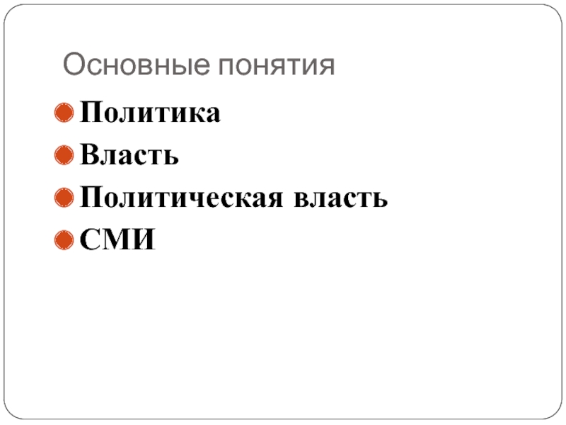 Основные понятияПолитикаВластьПолитическая властьСМИ