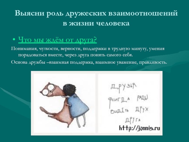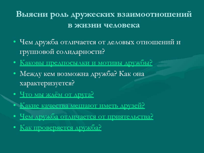 Слайд 5Выясни роль дружеских взаимоотношений в жизни человека