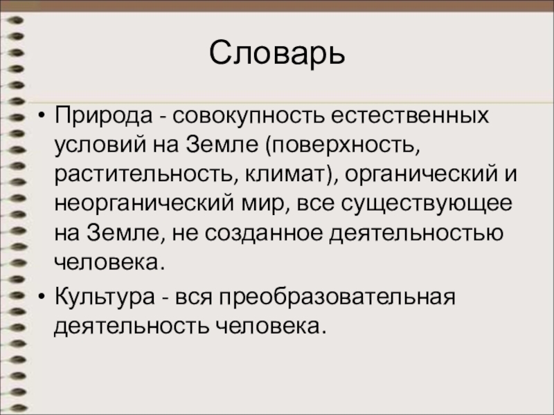 и неорганический мир, все существующее на Земле, не созданное деятельностью человека.