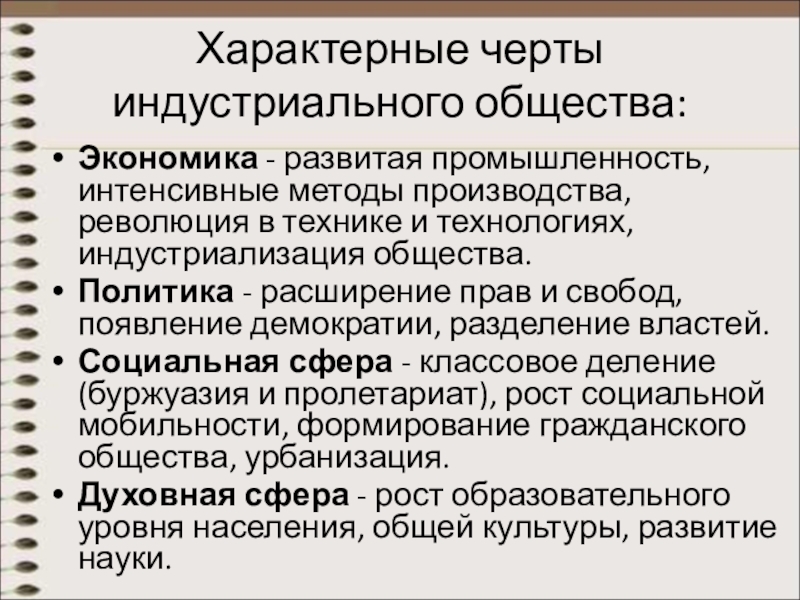 Социальная сфера - классовое деление (буржуазия и пролетариат), рост социальной мобильности, формирование гражданского общества, урбанизация.