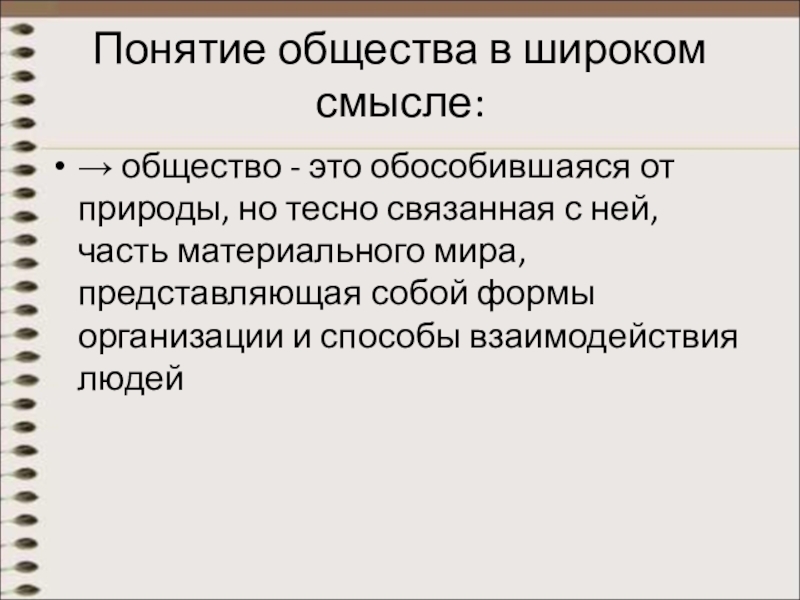 но тесно связанная с ней, часть материального мира, представляющая собой формы организации и способы взаимодействия людей