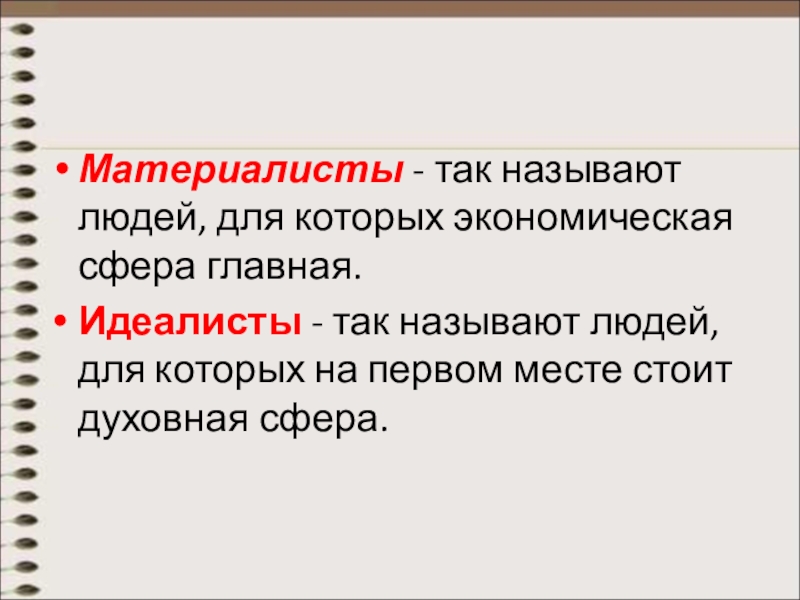 Материалисты - так называют людей, для которых экономическая сфера главная.