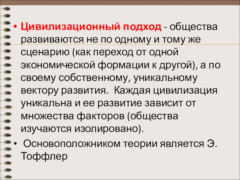 Цивилизационный подход - общества развиваются не по одному и тому же
