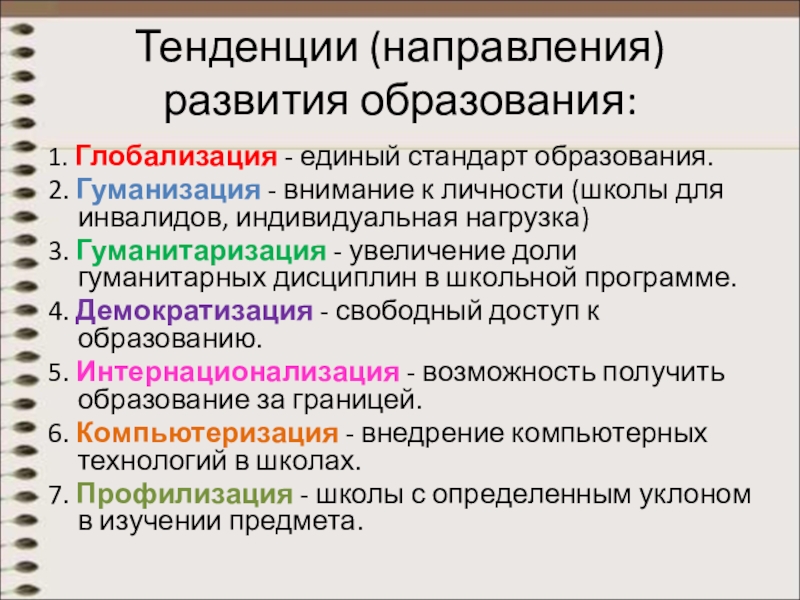 3. Гуманитаризация - увеличение доли гуманитарных дисциплин в школьной программе.