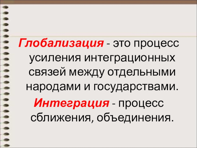 Глобализация - это процесс усиления интеграционных связей между отдельными народами и