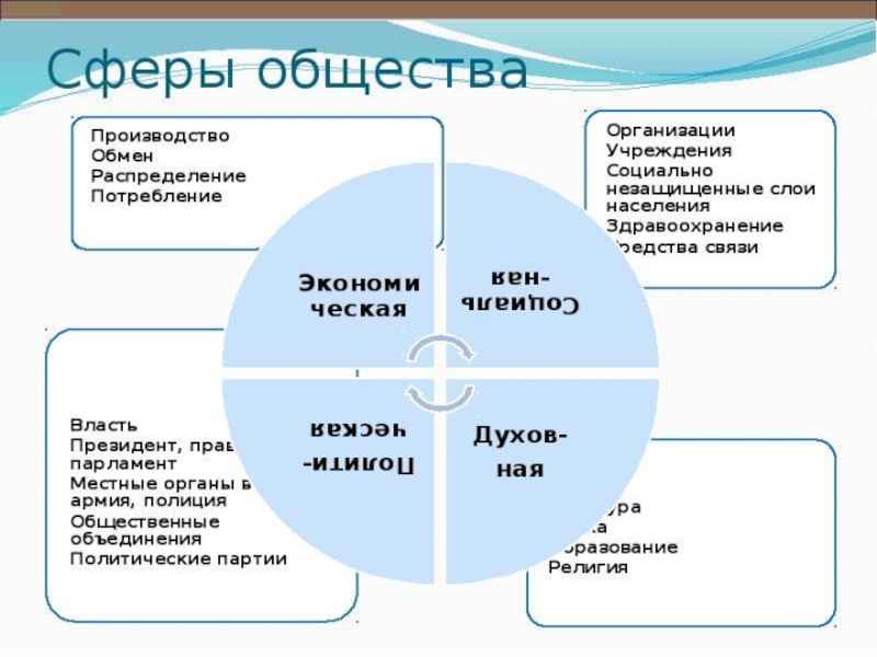 Социальная сфера - профессиональное деление общества, развитие гражданского общества.