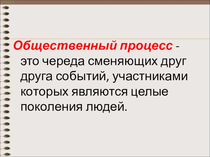 Общественный процесс - это череда сменяющих друг друга событий, участниками которых