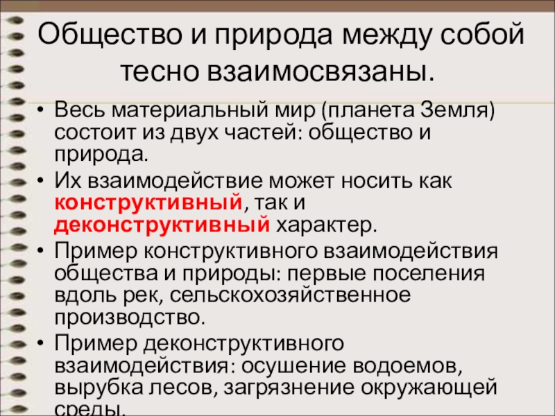 Слайд 6Общество и природа между собой тесно взаимосвязаны.