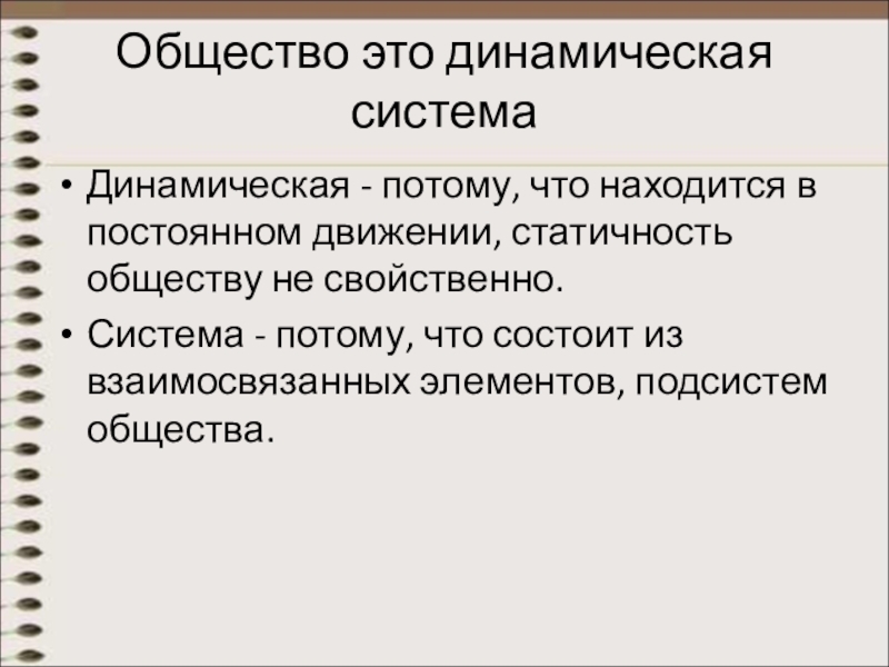 Система - потому, что состоит из взаимосвязанных элементов, подсистем общества.
