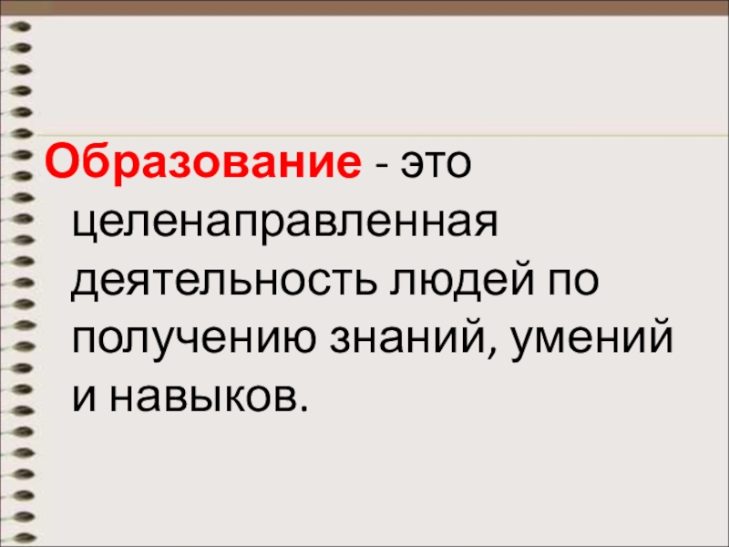 Образование - это целенаправленная деятельность людей по получению знаний, умений и
