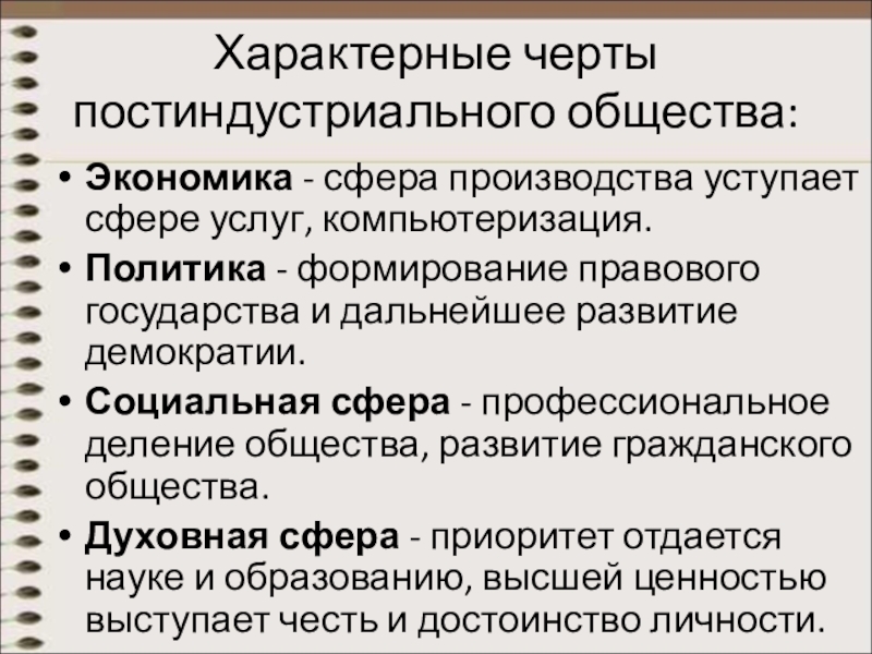 Экономика - сфера производства уступает сфере услуг, компьютеризация.