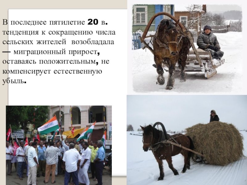 Слайд 34В последнее пятилетие 20 в. тенденция к сокращению числа сельских жителей