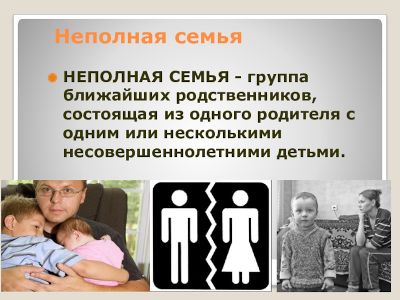 НЕПОЛНАЯ СЕМЬЯ - группа ближайших родственников, состоящая из одного