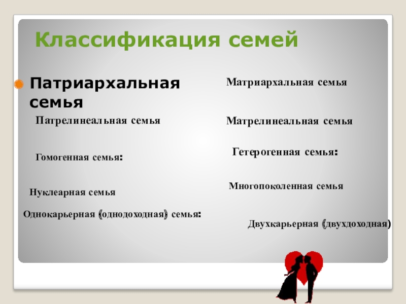 подразделяется на супружеские (жена, муж), родительские (мать, отец), детские, межпоколенные и внутрипоколенные и т.д.